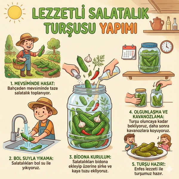 Seçilmiş salatalıklar: Lezzet ve kıtırlık için özenle seçilen salatalıklarla hazırlanır.