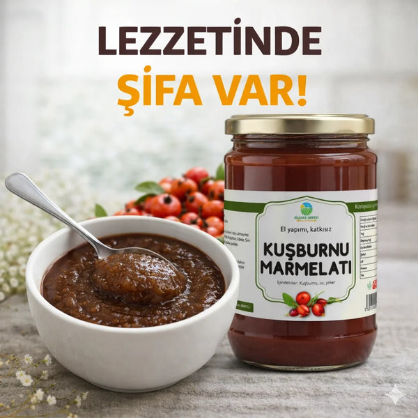 El yapımı kuşburnu marmelatımızı hemen sipariş ederek sofralarınıza katkısız, doğal ve besleyici bir tat kazandırabilirsiniz. Geleneksel yöntemlerle üretilen bu eşsiz lezzetle her kaşıkta doğallığın tadını çıkarın!